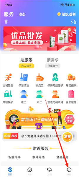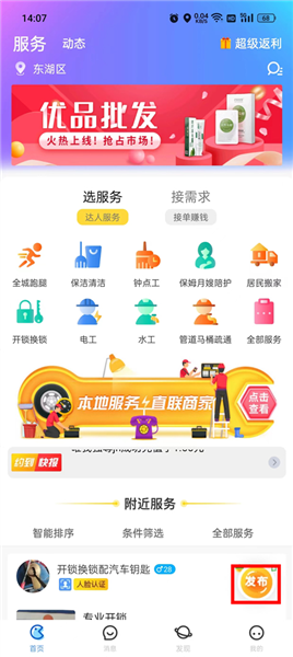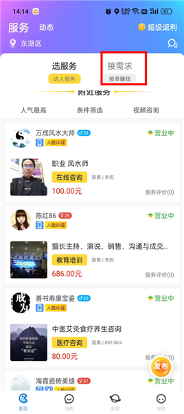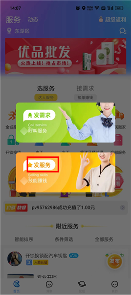 2、点击之后会出现发需求和发服务选择板块,选择发服务;
