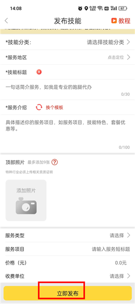 3、然后完善自己的个人技能,发布之后等待其他有需求的用户联系你。