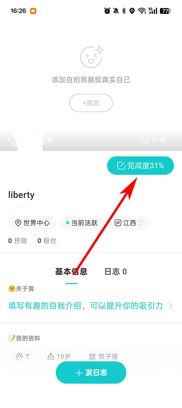2、进入主页之后,点击完成度,去添加身份信息