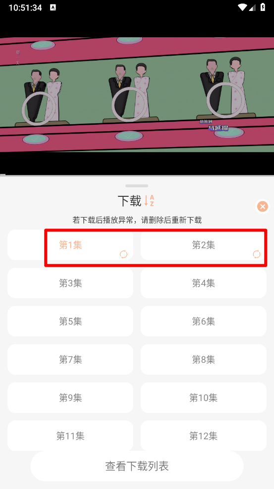 4、选择下载的剧集加入下载列表。