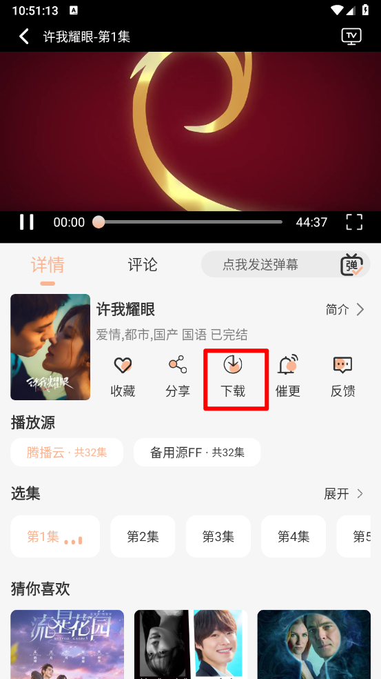 3、进入播放页面点击"下载"按钮。