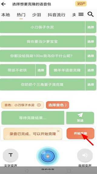 4、等待录制完成之后,直接点击【开始克隆】,就可以制作出有趣的语音包了。