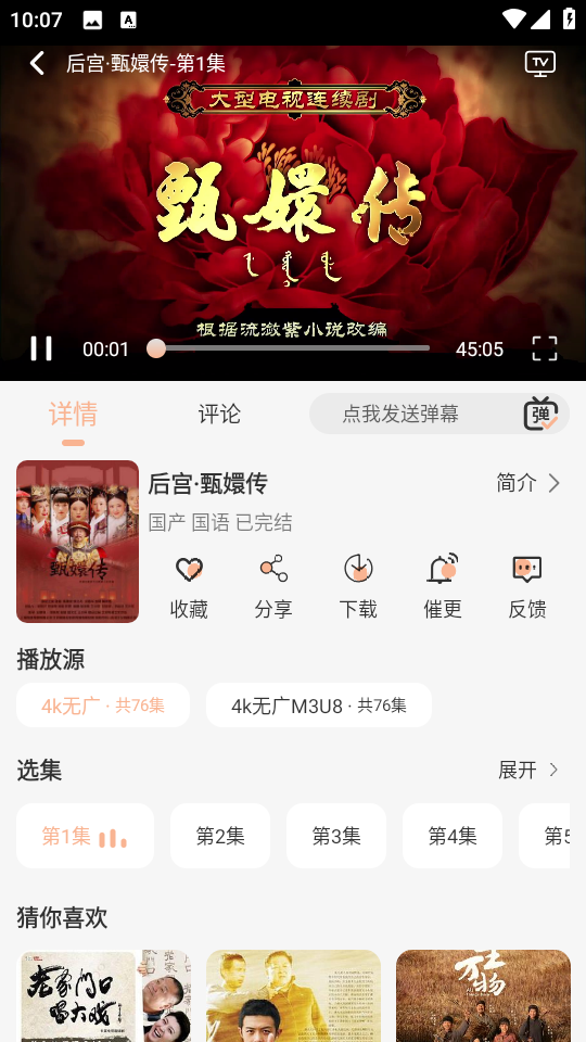 3、接着任意播放一部电视剧,这里小编以“甄嬛传”为例。