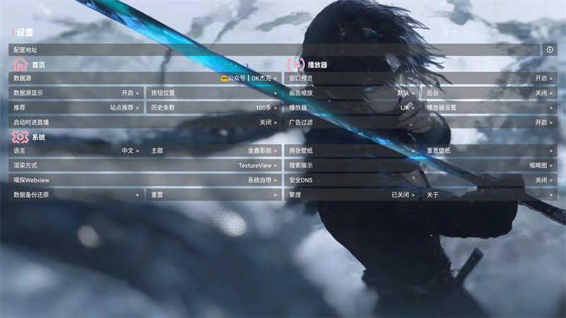 3、然后我们还可以通过设置功能来对配置地址、数据源、语言、渲染方式等参数进行调整。