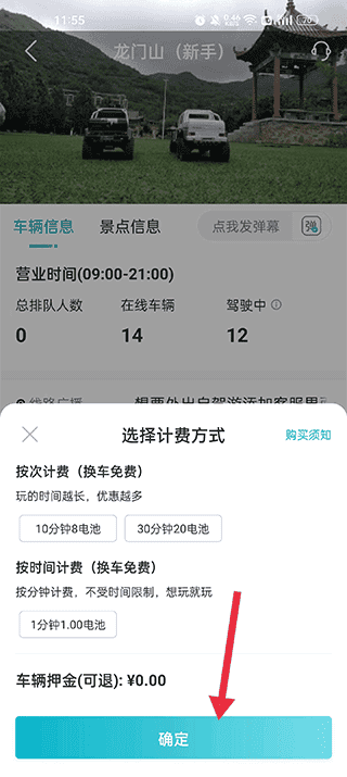 2、选择不同特色景区线路,选择不同型号模具车;