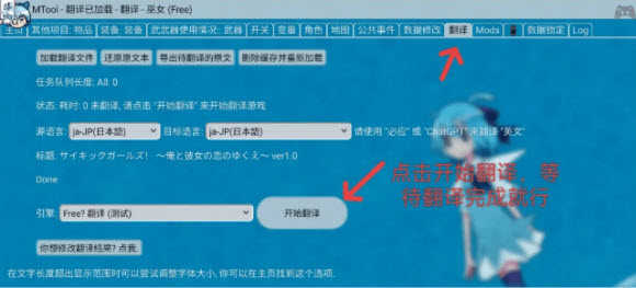 4、点击"开始翻译"按钮,MTool将自动翻译游戏中的所有文本。
