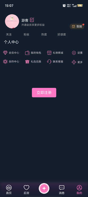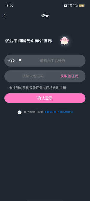 打开你的幽光AI伴侣,在个人中心点击立即注册功能。
