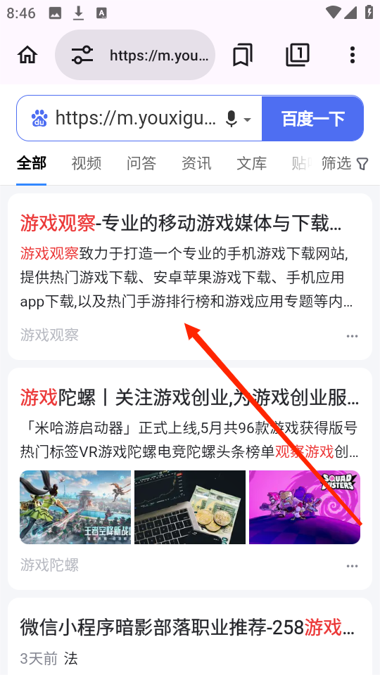 2、在搜索框任意输入一个你想要搜索的网址链接。