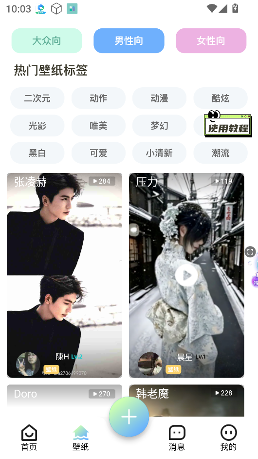 空空鱼壁纸是一款为用户提供超多优质壁纸用户手机美化的壁纸软件,如果只有壁纸的话,打造个性化桌面还是太少了,软件内还有不少动态壁纸,提示语音,小组件等,让用户可以在这里一站式完成个性化桌面的打造,平台汇聚上万款高清动态壁纸,涵盖自然风光、二次元、游戏CG等全品类素材,支持锁屏与桌面双重定制。独创"动态视觉+个性铃音"双系统,用户可自由搭配专属主题包,让手机每天焕发新生。