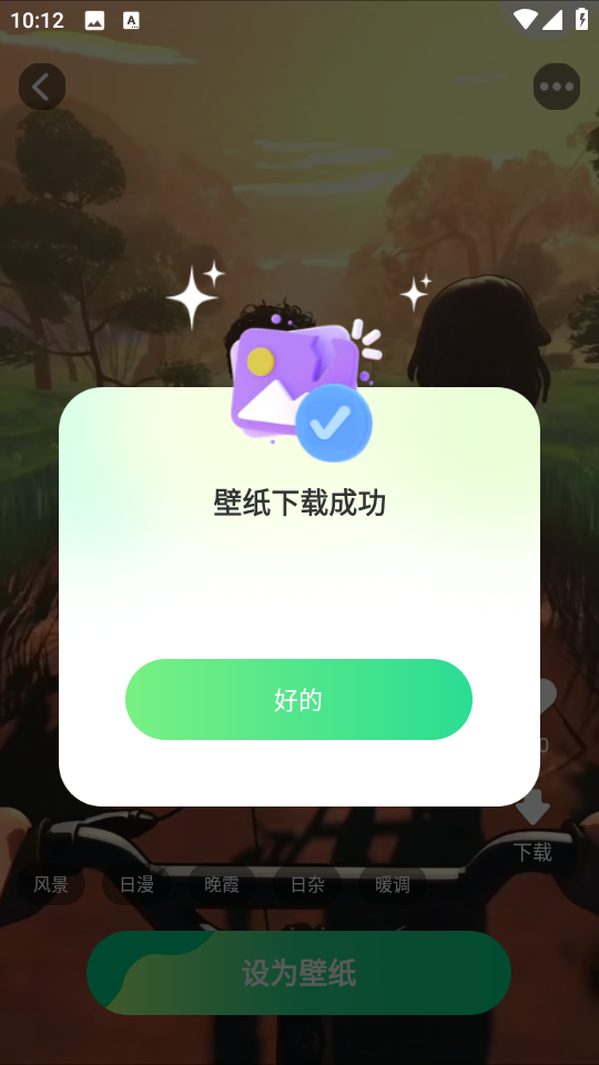 5、等待片刻之后,界面上就会出现“壁纸下载成功”的提示了。