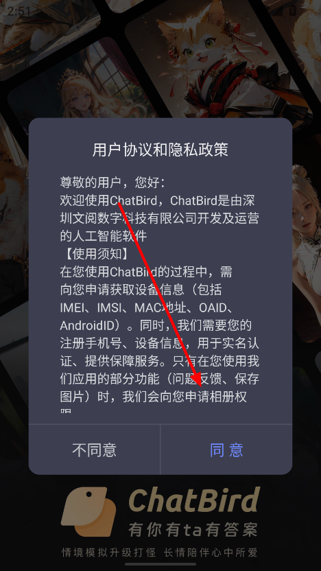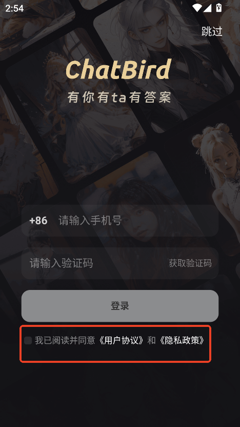 1、在本站下载安装好chatbird聊天软件,运行软件并同意软件政策