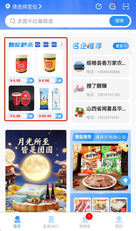 1、进入DCFAI智能商城App首页,下滑找到智能秒杀,还会限时秒杀的剩余时间。