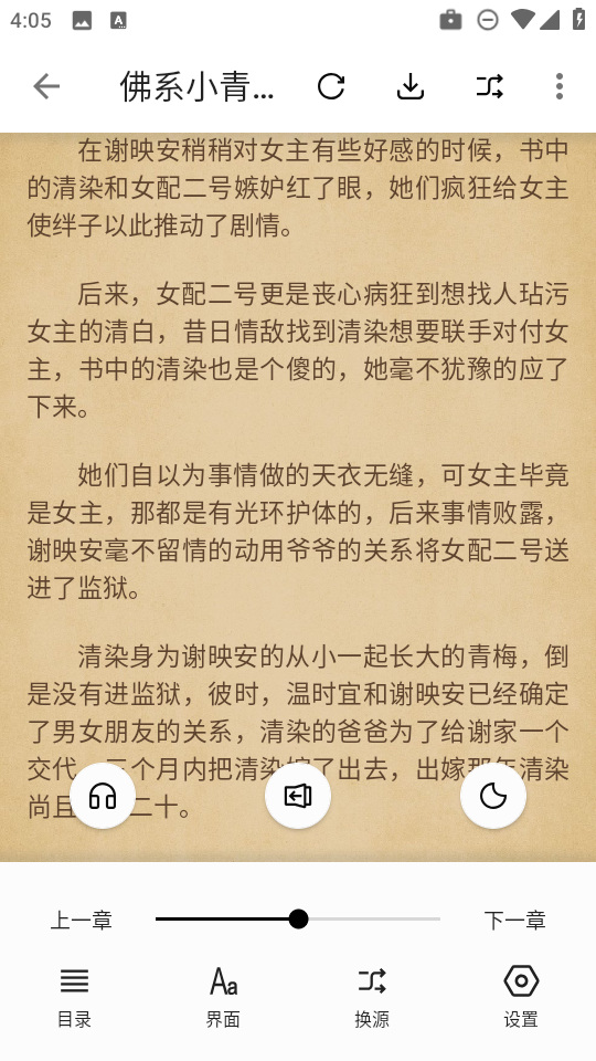 除此之外,界面设计的 “人性化” 也值得夸一夸。整体界面简洁干净,没有花里胡哨的广告弹窗干扰阅读;阅读模式更是多样,白天可以用默认的白底黑字,晚上切换 “夜间模式” 能自动调暗屏幕、优化字体对比度,长时间看也不容易眼疲劳;还支持调整字体大小、行间距,不管是用手机还是平板读,都能根据自己的习惯调出最舒服的阅读界面,细节处满满都是对读者的贴心。