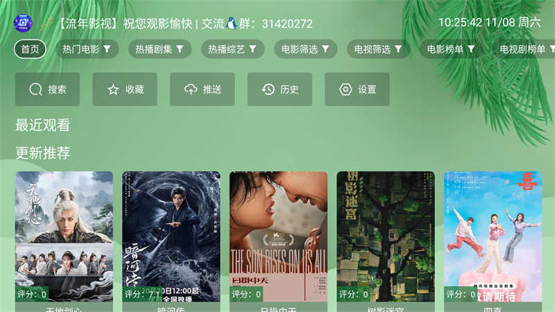 流年影视TV版专为电视用户打造的影视播放神器,海量影视资源一网打尽,涵盖电影、电视剧、综艺、动漫等,满足全家观影需求,界面简洁,操作便捷,支持高清画质播放,流畅不卡顿,让你在家就能享受影院级的观影体验,是家庭娱乐的不二之选,让你第一时间观看最新影片,不错过任何精彩瞬间,尽享影视盛宴。
