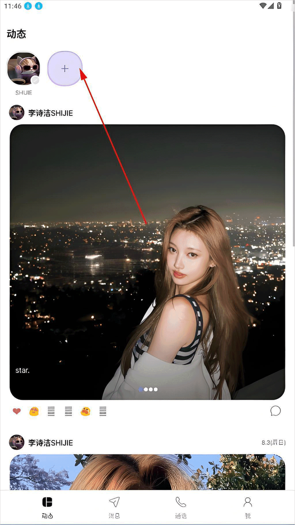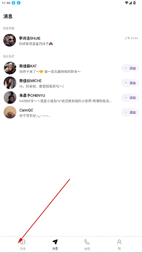 1、点击下方的动态。
