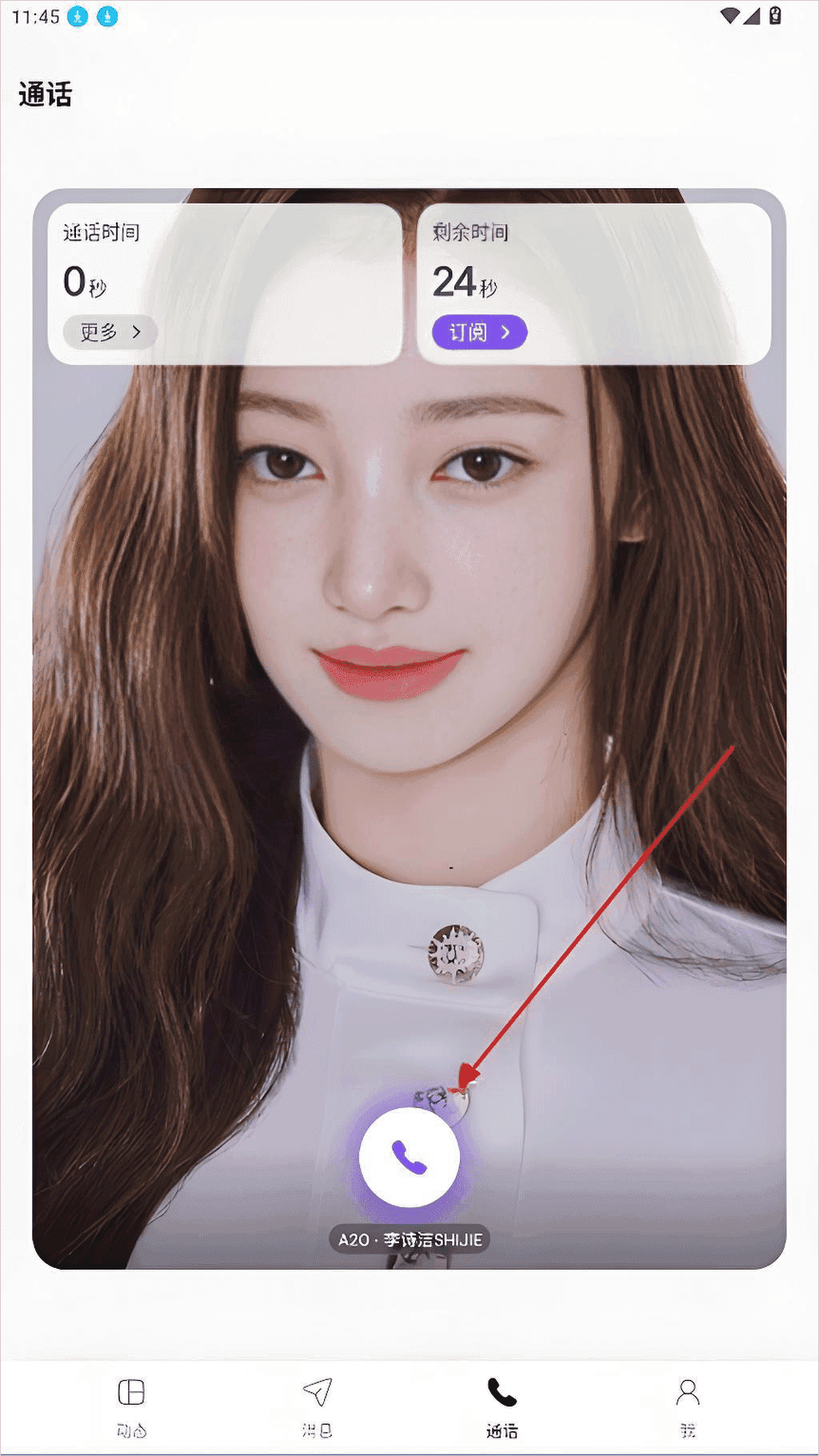 4、点击下方的通话还可以与你的爱豆打电话聊天哦。