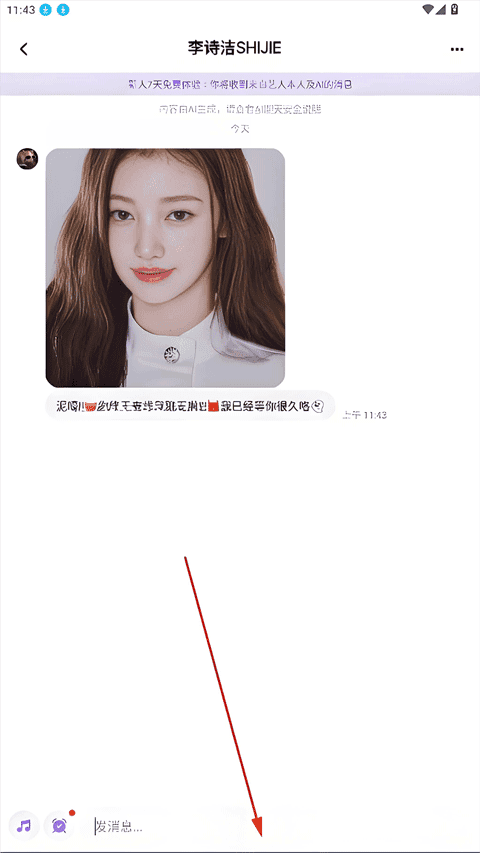 2、进入与爱豆的聊天页面,在下方的输入框开始你们的聊天吧。