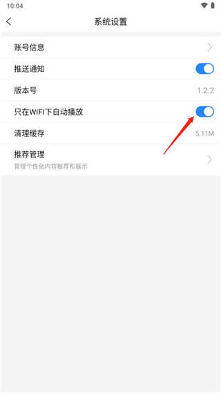 进入系统设置页面,点击【只在WIFI下自动播放】栏目右侧按钮关闭,变成灰色状态。