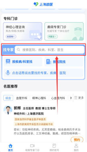 2、通过顶部的搜索功能,可直接按姓名或专长查找合适的医疗专家进行咨询。