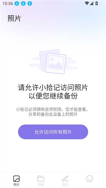 3、进入软件的照片界面后在底部菜单栏中找到“拾记”按钮来点击进入。