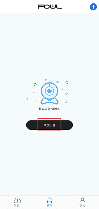 1、打开FOWL摄像头app,在首页中点击添加设备
