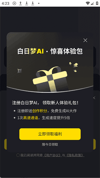 1、注册登录app即可领取大量梦币,赠送创作积分进行免费创作