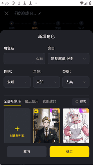 3、然后添加剧情角色