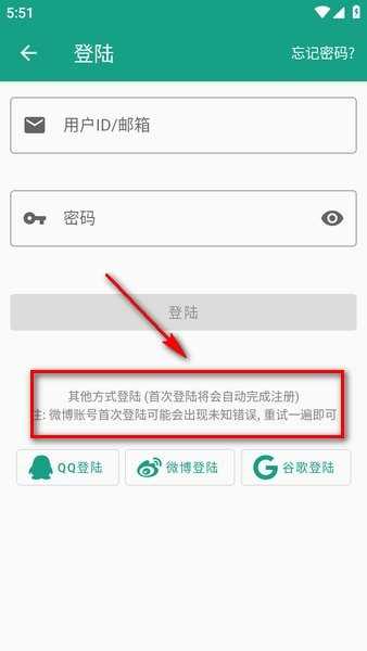 3、目前支持qq登陆、微博登陆和谷歌登陆三种第三方账号登陆方式;