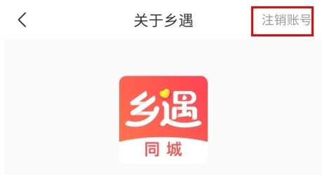 1、在关于乡遇页面中点击右上角的注销账号按钮;