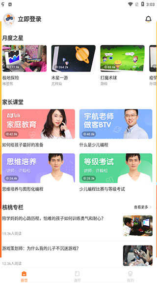 核桃编程家长端是一款专门为少儿所打造的编程学习工具,这个版本是服务于家长,帮助家长了解孩子的学习情况,查看每日的课程内容,线上你总能看到孩子们的学习情况,最新的考试成绩你能在第一时间知道,并且了解学习进度和知识掌握情况。作为少儿编程教育行业的领军者,核桃编程依托人工智能和科学教育方法,致力于启发孩子的学习力,让编程学习更高效、更有趣。