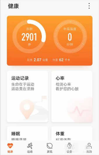 6、点开健康,可以对心率,睡眠,体重等进行监测。