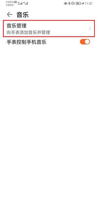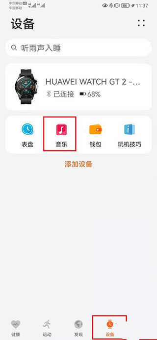 1、在华为健康应用的设备页面,打开华为手表【音乐】选项;