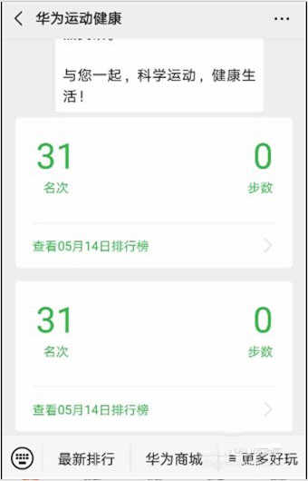 2、点开公众号最新排行,可以看到自己步数和名次;