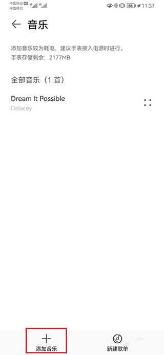 3、在音乐页面,点击屏幕下方【添加音乐】选项;