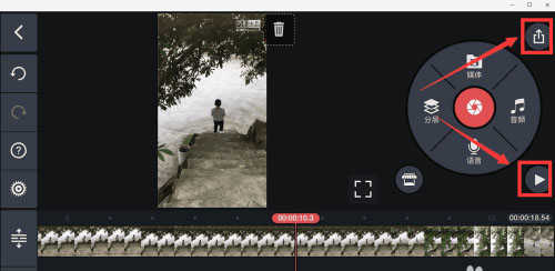 7、都好了以后可以点击播放预览,满意后点击右上角“导出”按钮。