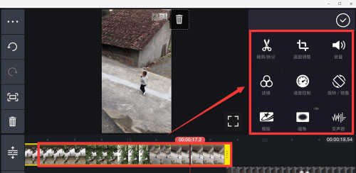 5、点击视频素材,可以对视频进行裁剪,调整画面、速度,也可旋转,添加滤镜等。