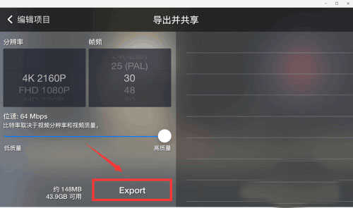 8、最后可选择分辨率、帧频,点击“Export”,就会存到手机相册。