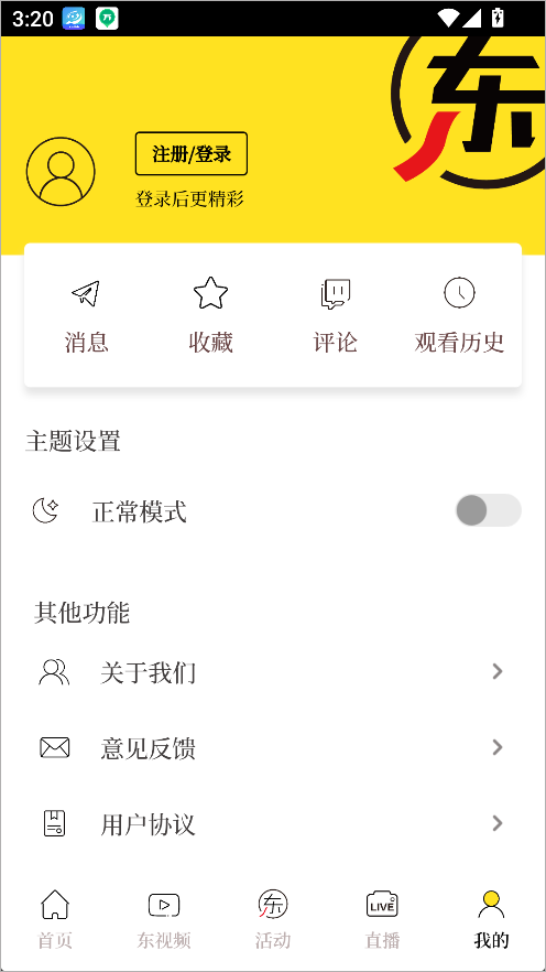 个人中心,管理收藏、订阅、观看历史及账户设置。
