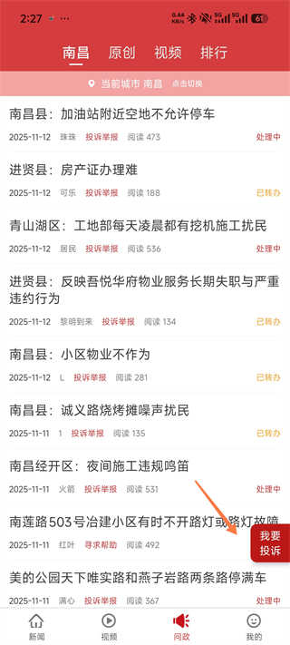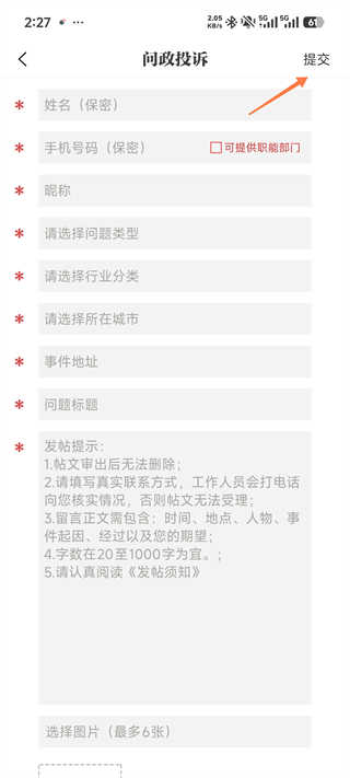 2、在问政页面右下角,点击「我要投诉」按钮,进入投诉填写界面。