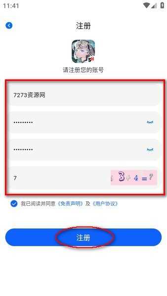 填写账号、密码,输入验证码,勾选同样用户协议,点击“注册”;