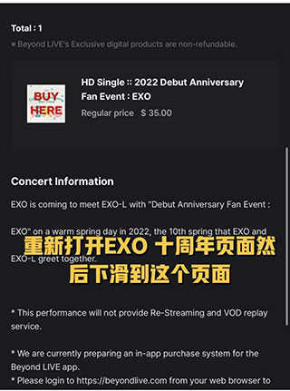 1、首先下载好本站带来的beyond live安装包,点击自己想要购买的演唱会,就拿exo来举例