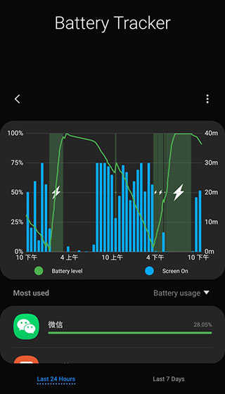 之所以这2个插件存在的原因是三星之前非国行的系统由于国外应用生态相对略好一些,没有那么多花花肠子,故没有作强力的后台限制等功能在系统内,多是依靠安卓本身的管理。这里面的电池跟踪器算是个高级版的电量使用情况图表,你可以看到更详细的各个app电池使用信息。