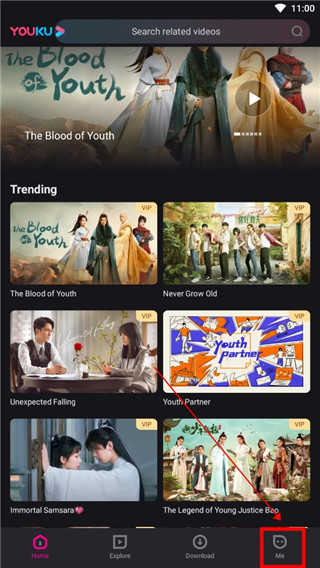 1、下载好YOUKU后,点击进入,选择下方的【Me】;