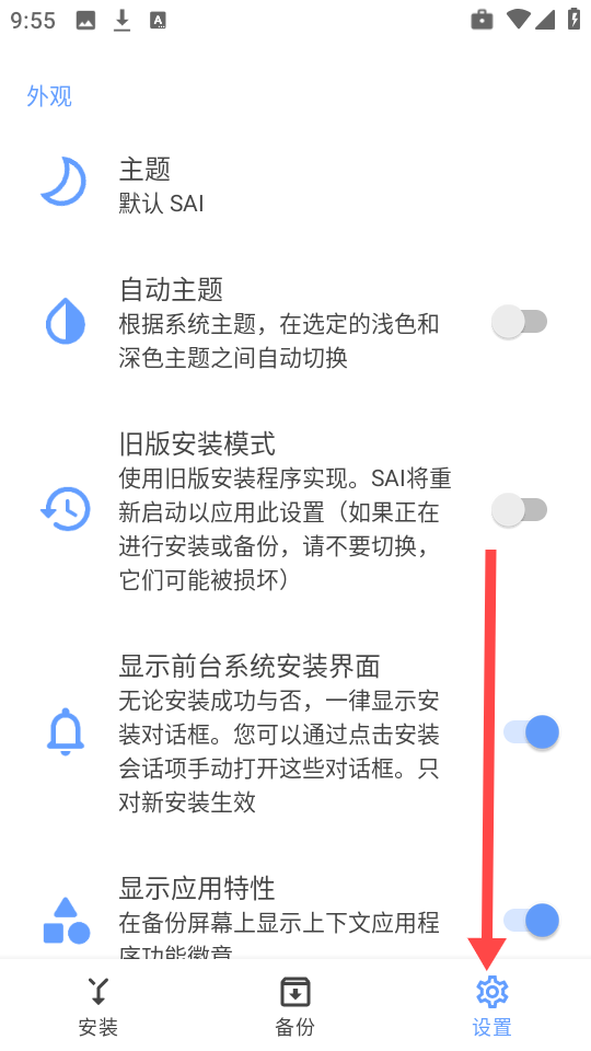 SAI是一款非常好用的手机辅助工具,很多用户在使用电脑上的一些办公工具的时候会感觉到十分的方便,该应用可以像安装单个apk一样安装Split Apk(分包apk)。这对安装以App Bundles模式打包发布的应用会很有帮助。(由于除Google Play以外,Android没有提供原生方法直接安装分包apk(Split Apk)。)同时还可以让用户在这里可以备份文件,软件内还可以让用户根据自己的喜好来更换主题的整体颜色。