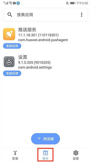 6、进入备份界面,还可以直接搜索需要进行备份的应用。