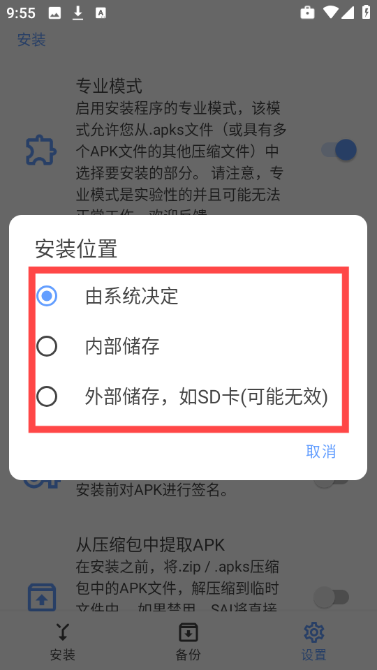 3、支持由系统决定,内部储存,外部储存等多个安装位置。