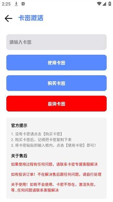 3、将卡密粘贴到输入框内,点击【使用卡密】即可