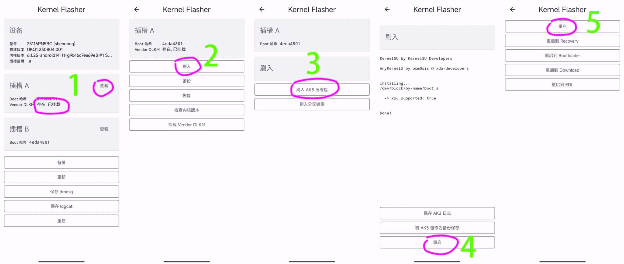 3、打开 Kernel Flasher,按照如下步骤操作。