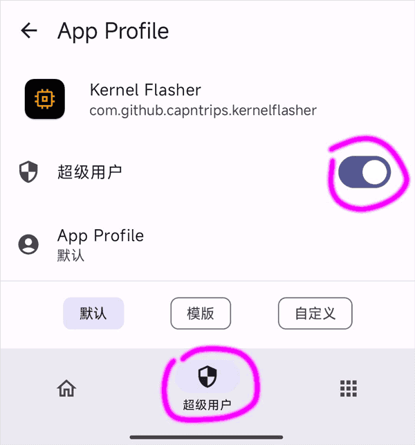 2、打开 KernelSU 打开 Kernel Flasher 超级用户权限。