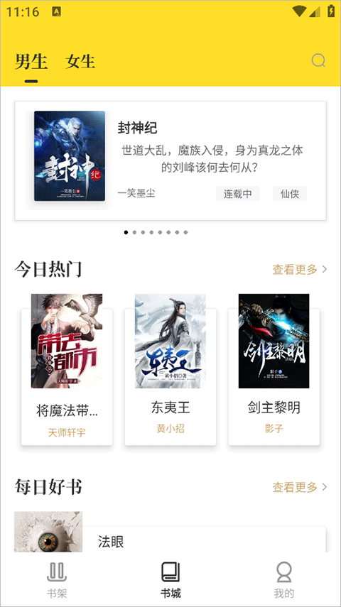2、书城为用户提供各类热门小说,还有热门榜单、推荐等